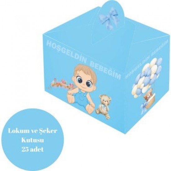 Hoşgeldin Bebeğim Temalı Mavi Şeker - Lokum Kutusu - 25 Adet