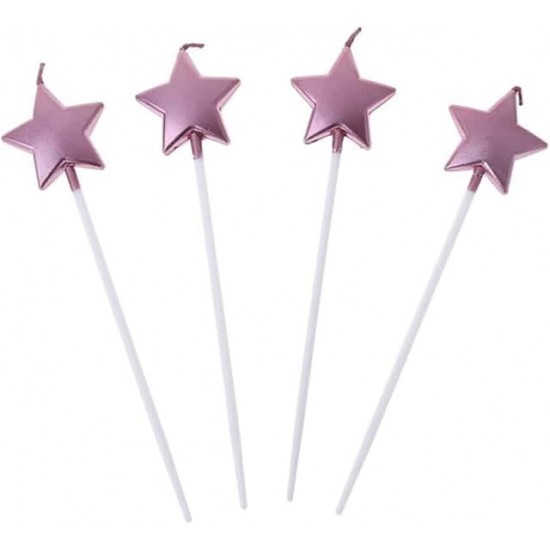 Pembe Yıldız Mum 15 cm 4 Adet